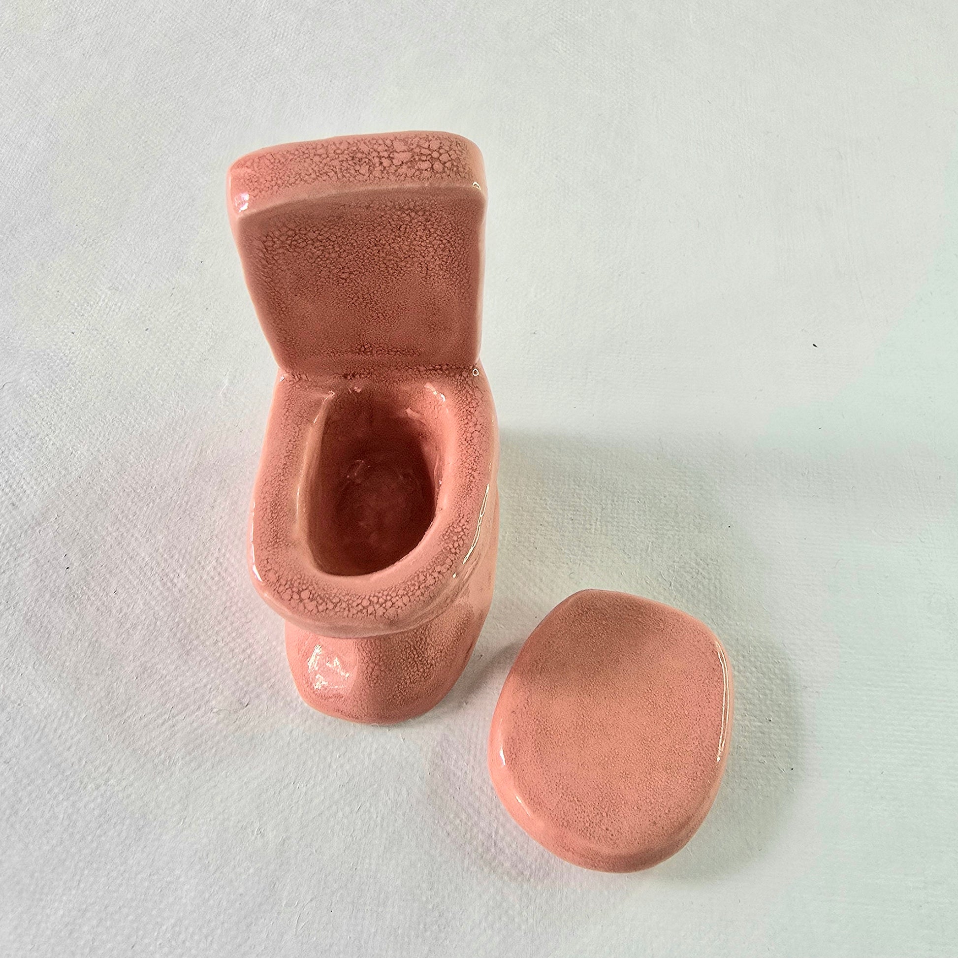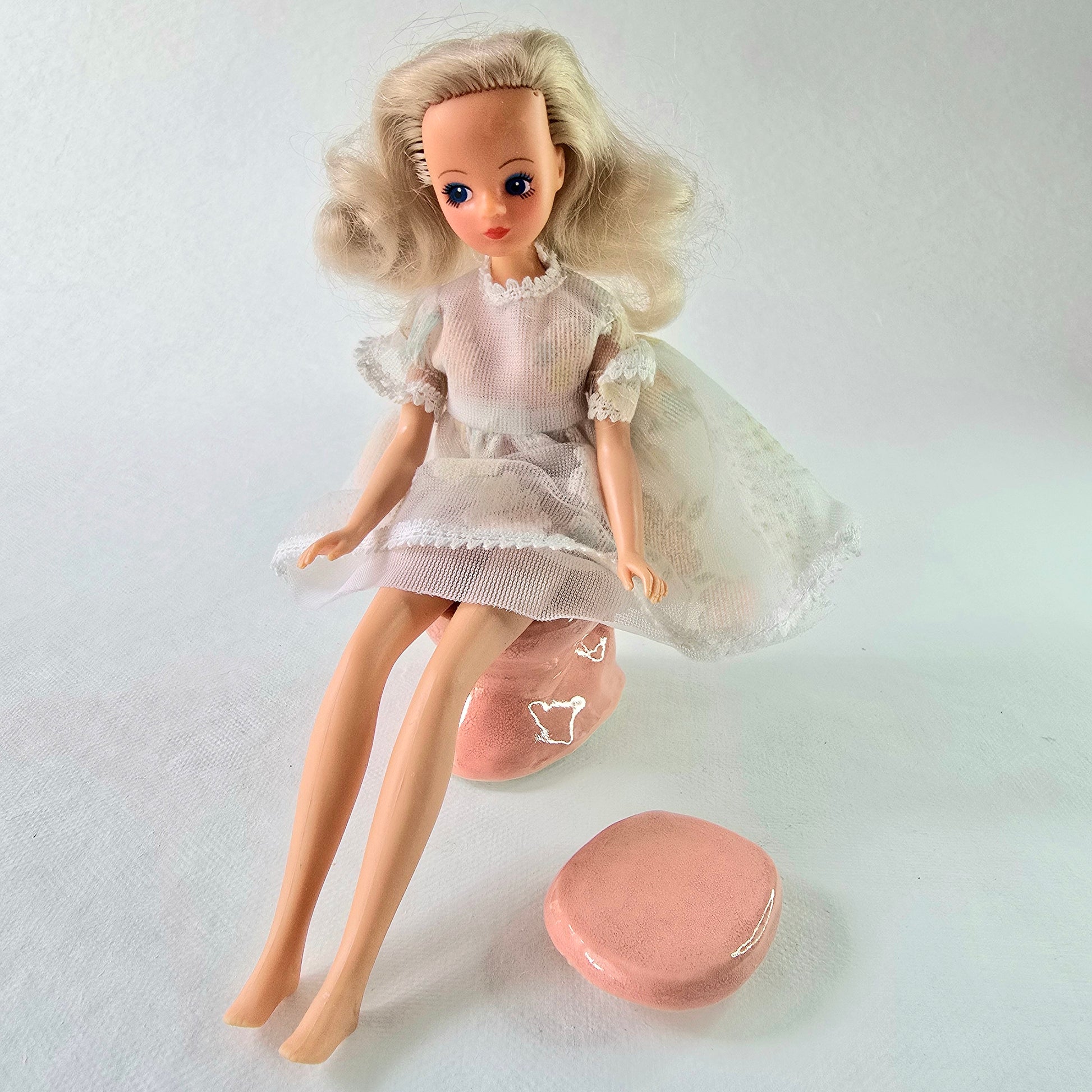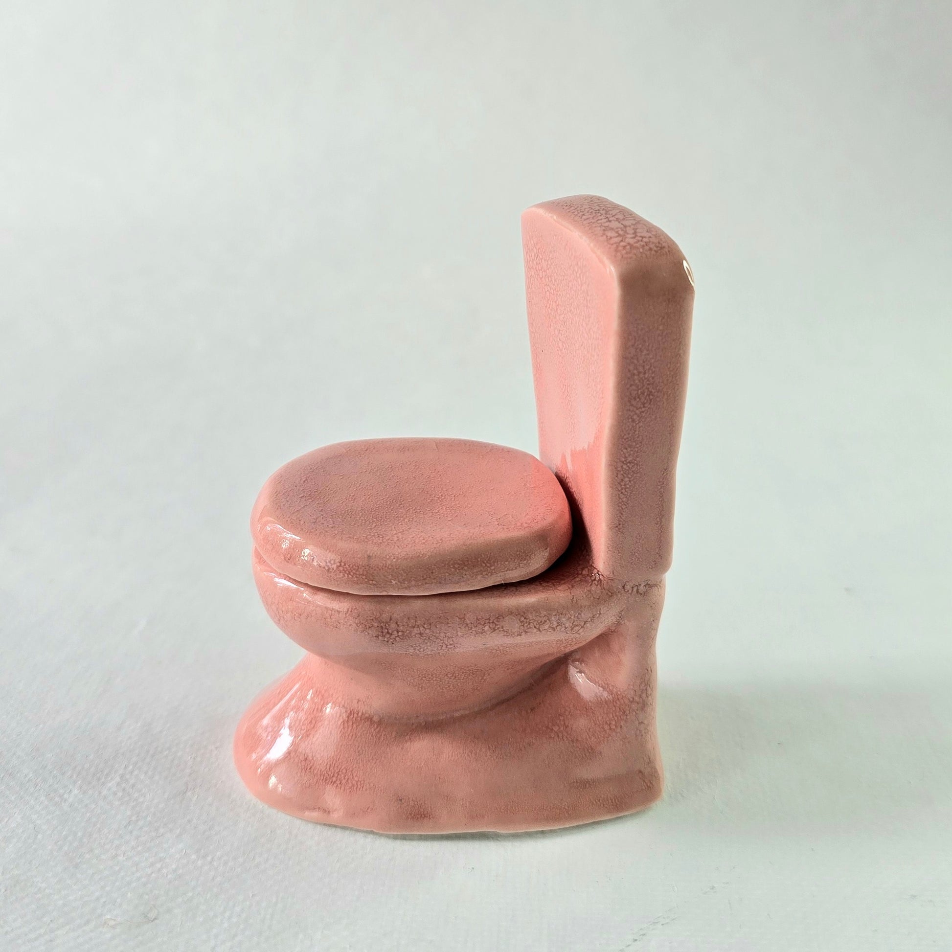 Keraaminen, poltettu ja lasitettu vessanpönttö Barbie-nukkea pienemmälle nukelle, ainoa laatuaan. Kuvassa Daisy-nukke näyttää mittakaavaa (nukke ei myynnissä).