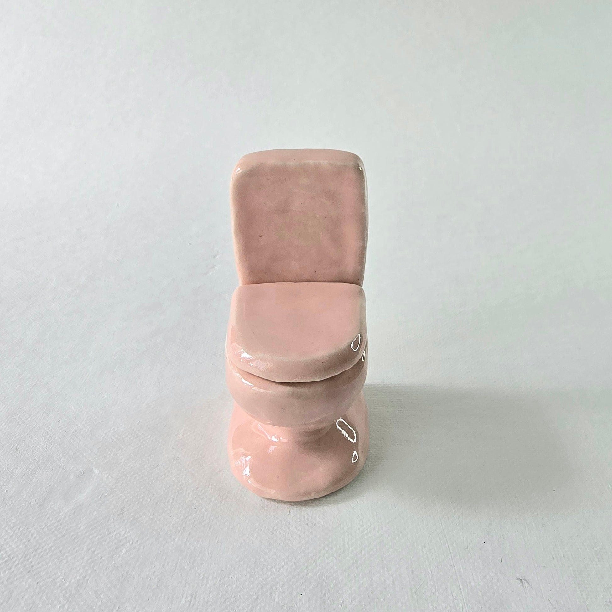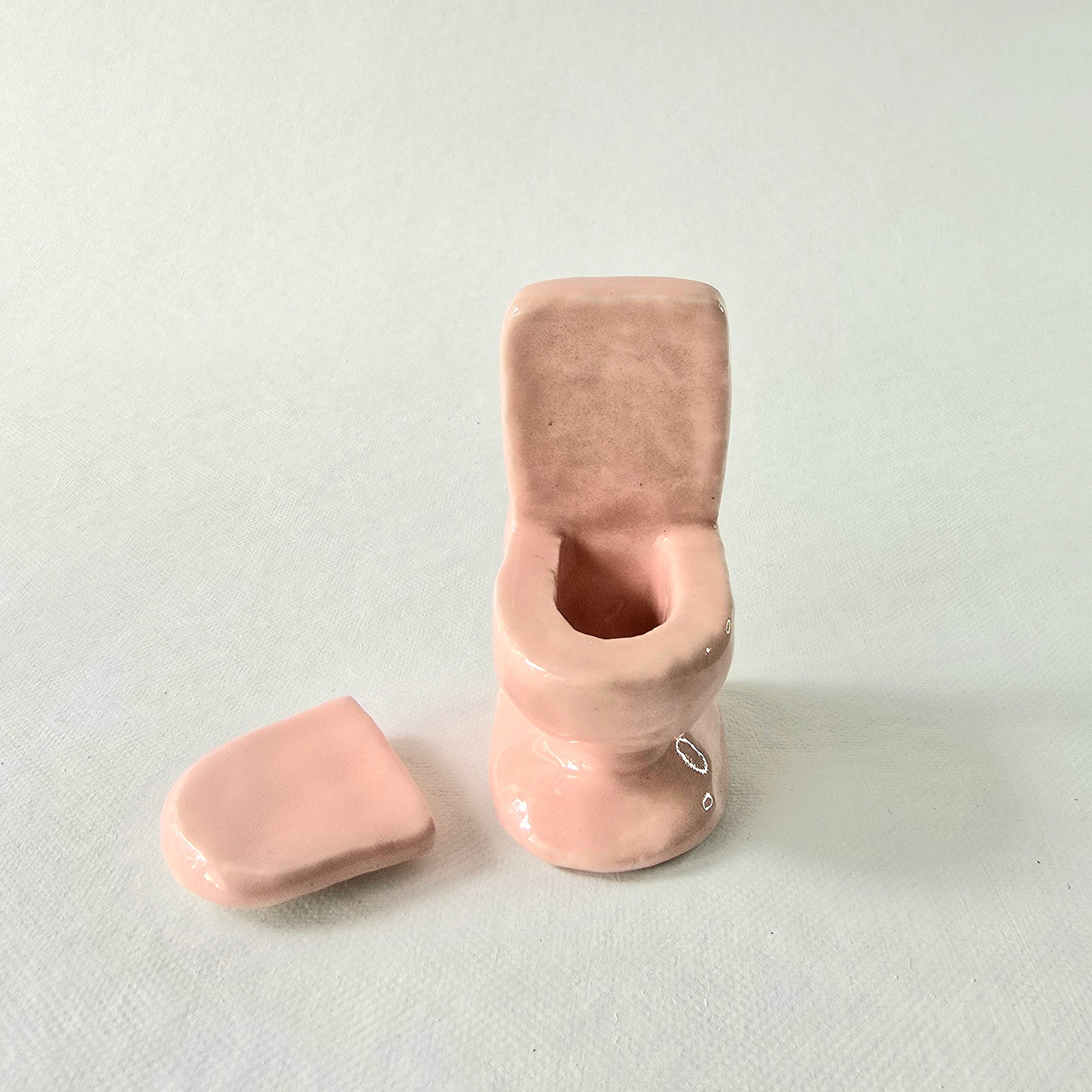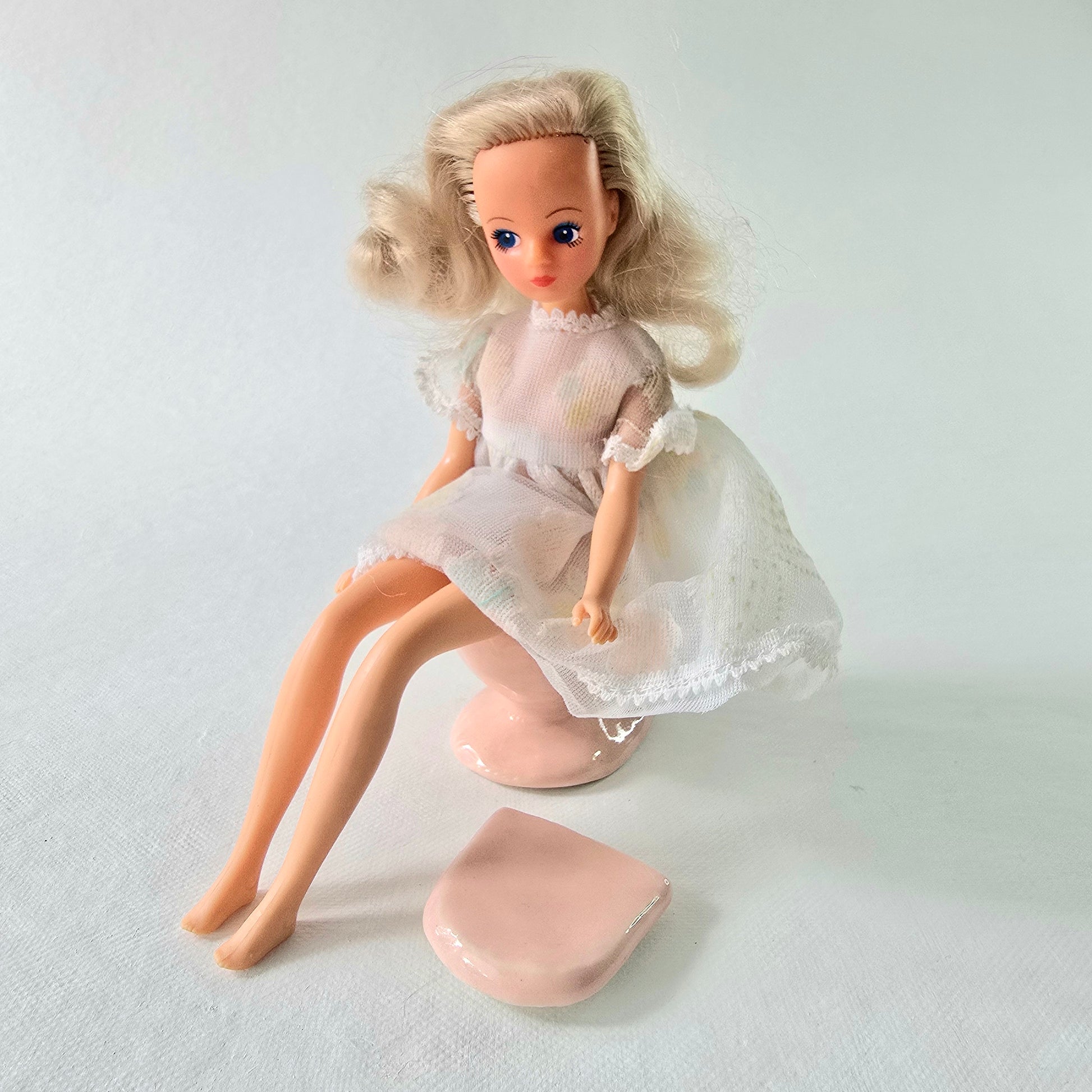 Keraaminen, poltettu ja lasitettu vessanpönttö Barbie-nukkea pienemmälle nukelle, ainoa laatuaan. Kuvassa Daisy-nukke näyttää mittakaavaa (nukke ei myynnissä).