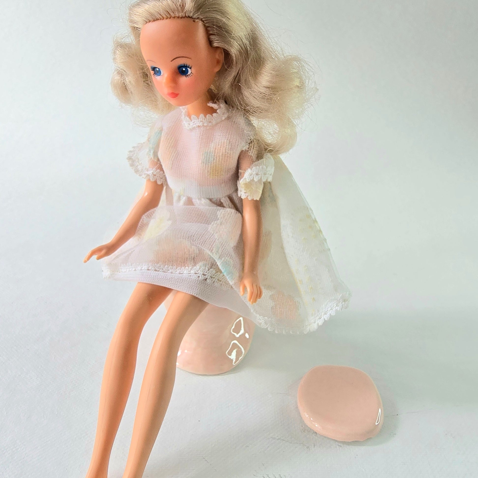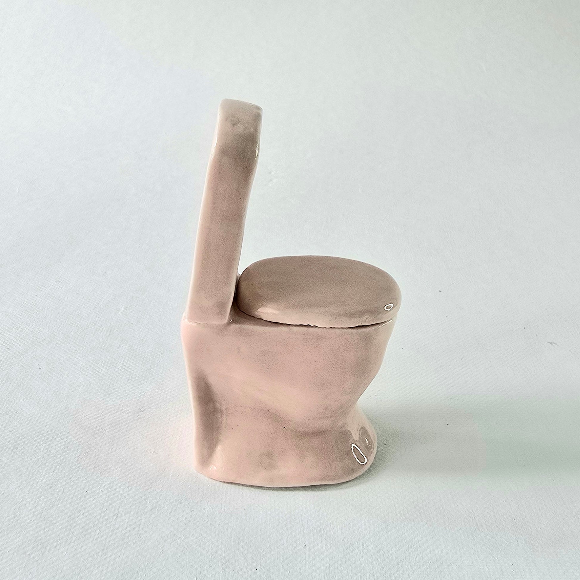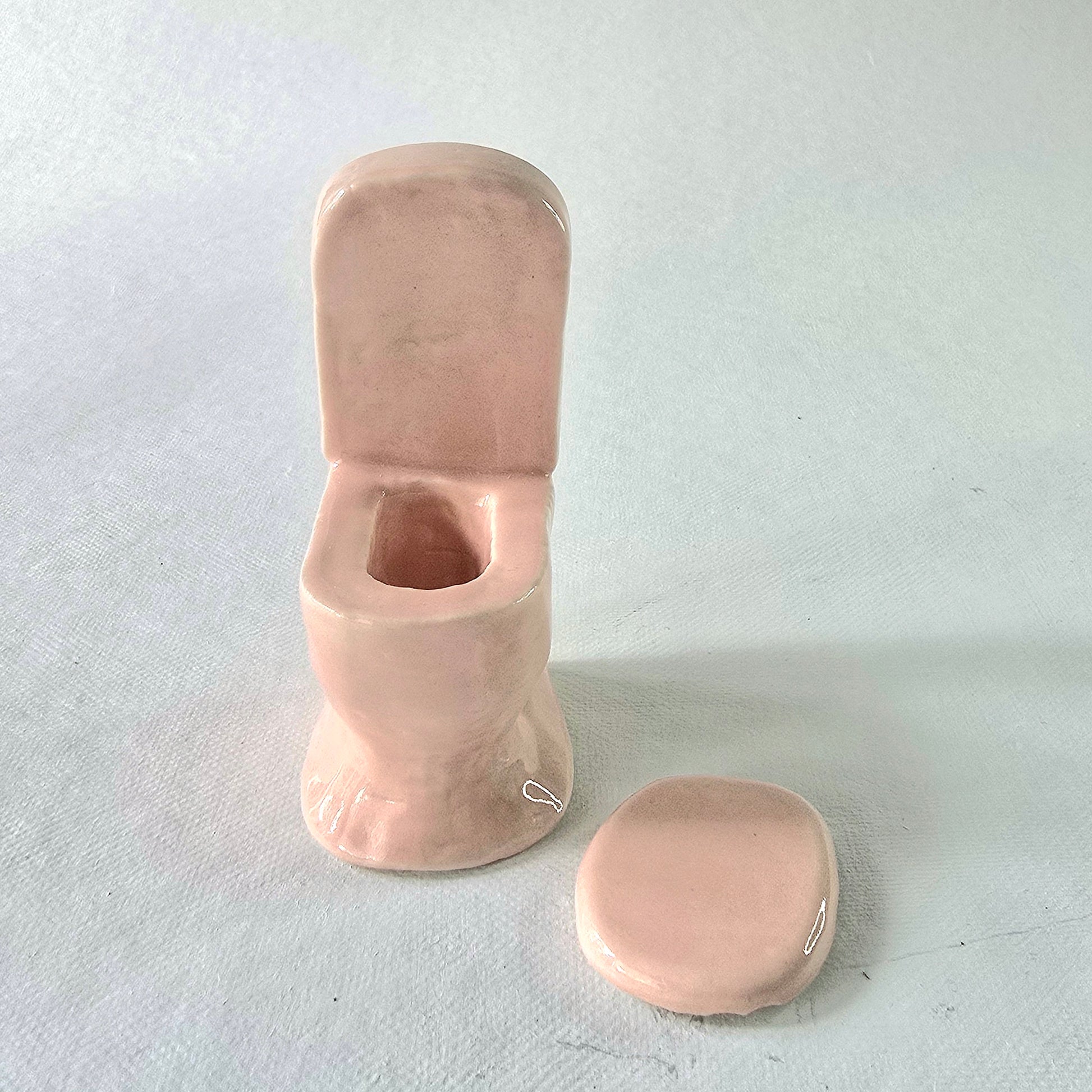 Keraaminen, poltettu ja lasitettu vessanpönttö Barbie-nukkea pienemmälle nukelle, ainoa laatuaan. Kuvassa Daisy-nukke näyttää mittakaavaa (nukke ei myynnissä).
